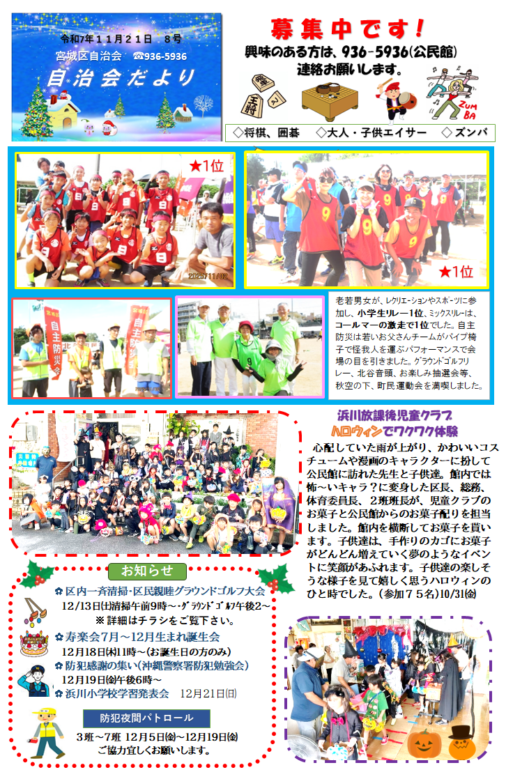 | 2022年1月カレンダ- | 新年の挨拶 | 新春ボウリング大会 | 区内清掃・GG大会写真 | クリスマス会写真 |