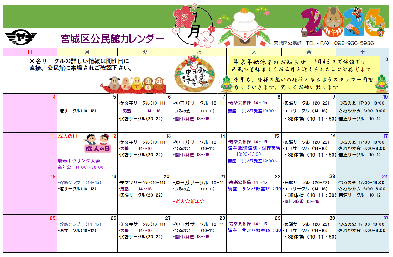 | 1月カレンダ- | 1/8 新春ボウリング大会 |