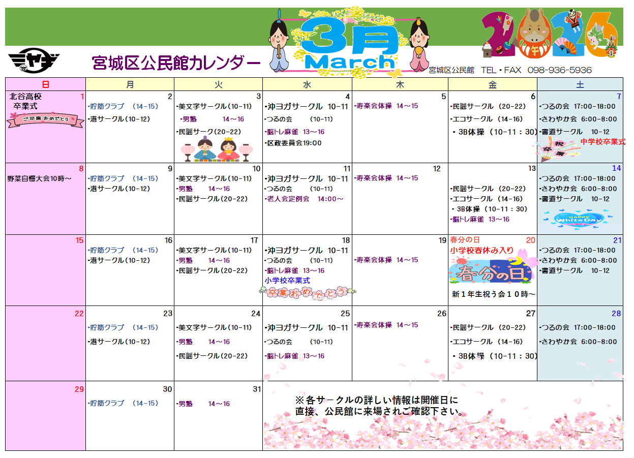 | 3月カレンダ- |